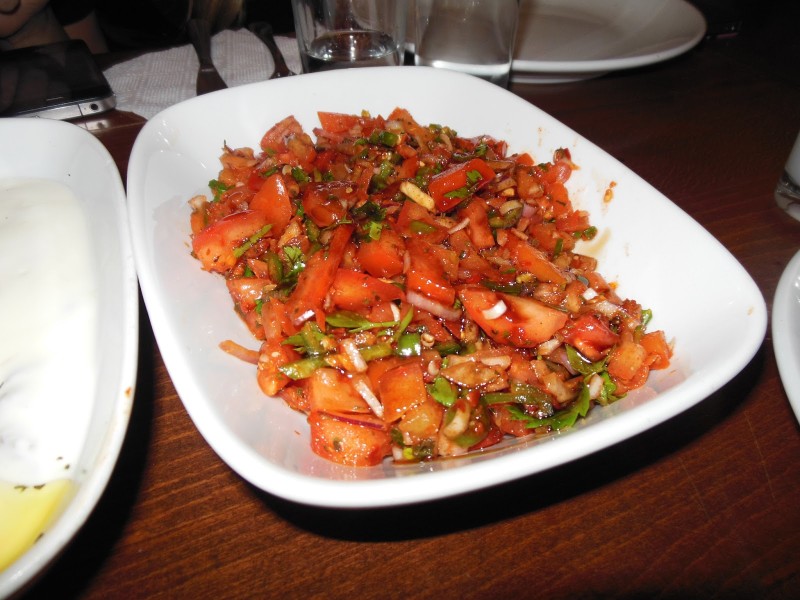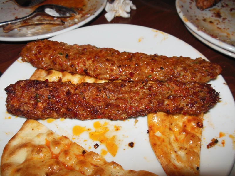 Vee, gelelim yemeklere… Buraya kadar top çevirdiğimi düşünüp yemeklerden bahsetmemi bekleyenler için söylüyorum. Bu satıları yazarken bile ağzımın suyu akıyor resmen ! Çektiğim fotoğraflara bakarak nasıl bir masada oturduğumu hayal edebiliriniz rahatlıkla. Tahta ve dikdörtgen bir masa hayal etmenizi istiyorum. Üzerinde kuzu ve ciğerden çöpşiş (lavaş yığınları altında), patlıcanlı yoğurt, gavurdağı salatası, közlenmiş biber ve domates, uykuluk, adana kebap, kaburga, kanat ve bolca rakı olsun. Sonra beni hayal edin. Yükselen tansiyonuna rağmen bütün bu lezzetlerden tatmak için can atan ve bir yandan da fotoğraf çeken.