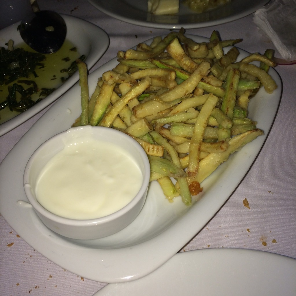 Ne mi yemeli? Bence Ogün’ün şaşırtıcı yanlarından birisi kabak kızartmasıdır. Bu “kabak tava” mevzuunu irdelerken, arşivimin tozlu raflarına el atmam gerektiğini her zaman çok iyi bilirim, zira nice mekanlarda yediğim bu yemeğin iyisini gördüm mü mutlaka paylaşmak ve diğerleriyle karşılaştırmak isterim. Ogün’ün kabak kızartması, diğer mekanlardaki gibi madalyon formunda, ya da elips şeklinde değil, alıştığımız patates kızartması formatında kalem gibi ince ince gelir önümüze. Yağı çekmemiştir, diri ve lezzetlidir. Yoğurt ve sarmısaktan mürekkep sosu ise insanın burnundan gelen türden yakıcı bir karışım olmaktan ziyade, hafif ve kabakla uyum içinde rakseden bir güzelliktir. Siz siz olun, Ogün’e gittiğinizde muhakkak bir kabak tava sipariş edin. Memnun kalacaksınız. Aynı duyguları, Eleos’un hafif peynirli, Todori ve Seviç Meyhanesi’nin çıtır çıtır kabak kızartmaları için de hissettiğimi bilmenizi isterim. Kabağın birinci ligi bu saydıklarımdan oluşmaktadır İstanbul’da.